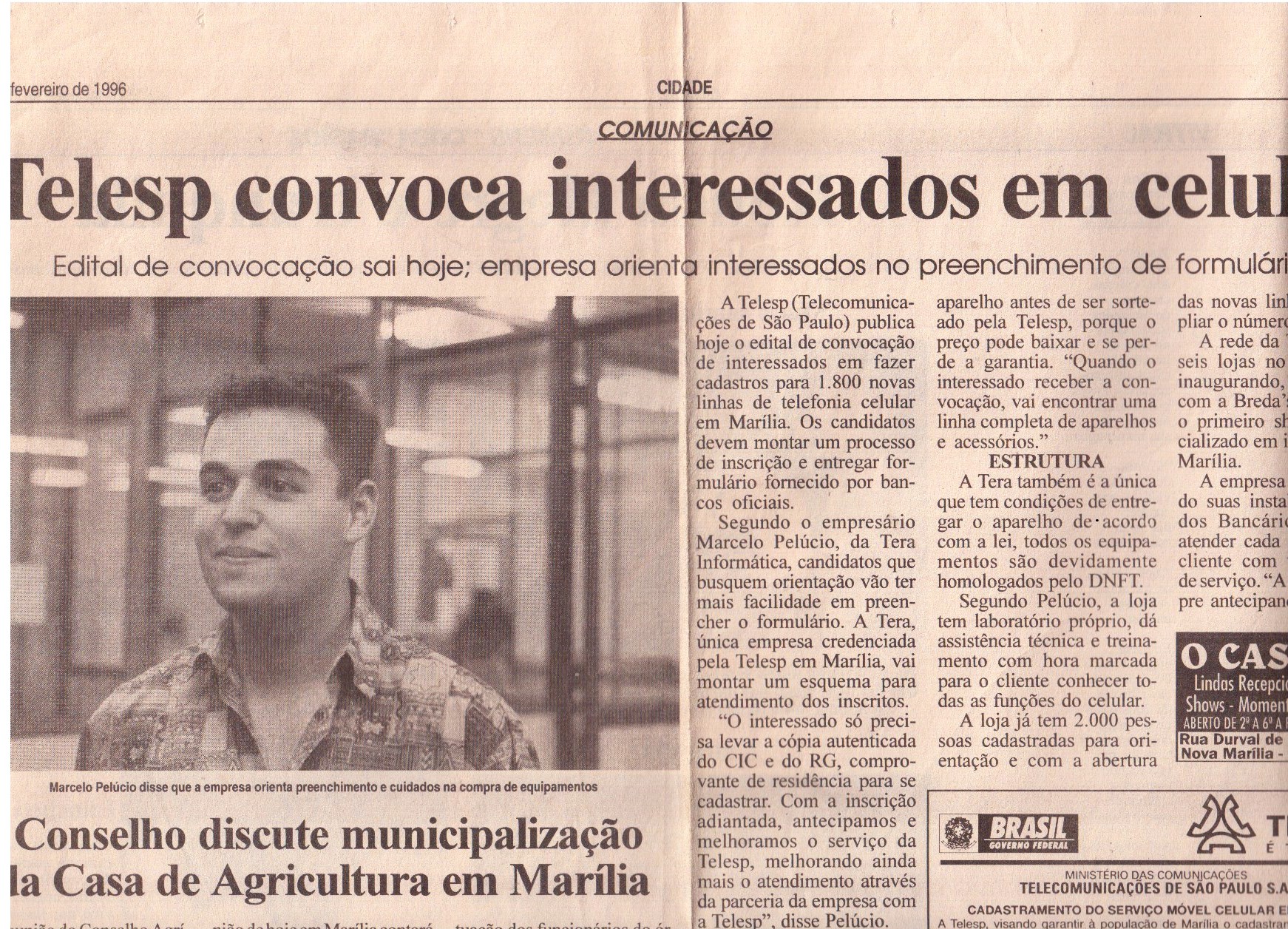 A Telesp (Telecomunicações de São Paulo) publica hoje o edital de convocação para 1.800 novas linhas de telefonia celular em Marília. Os candidatos devem montar um processo de inscrição e entregar formulário por bancos oficiais.