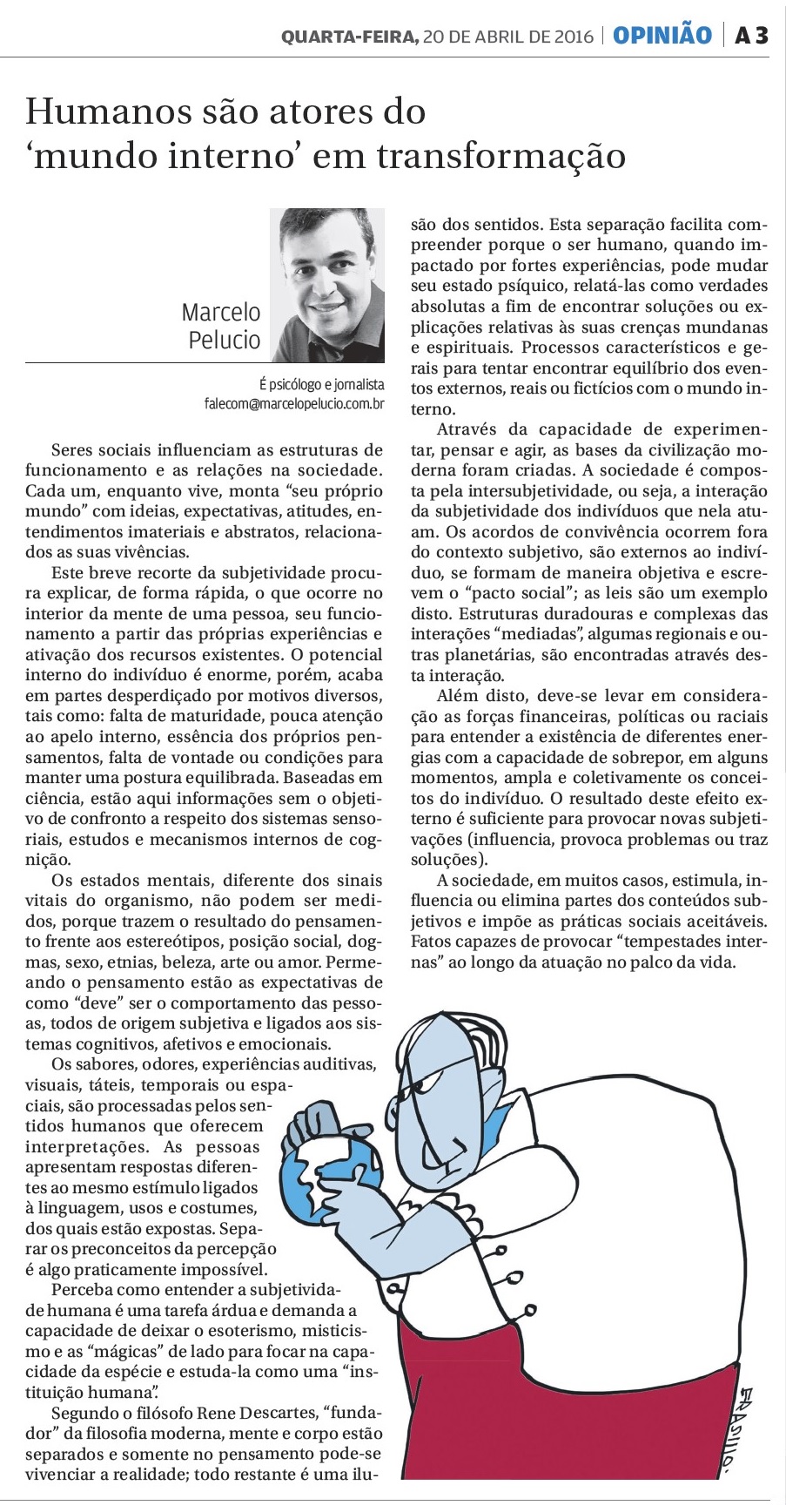 Yes Marília: http://yesmarilia.com.br/artigo/MarceloPelucio/2016/04/humanos-sao-atores-do-mundo-interno-em-transformacao.html