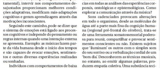 As reações apresentadas diante ao estímulo musical ‘transportam’ o pensamento e as emoções até novos e sofisticados patamares de compreensão do significado da vida. Uma reciprocidade real e, ao mesmo tempo, impossível de compreender.