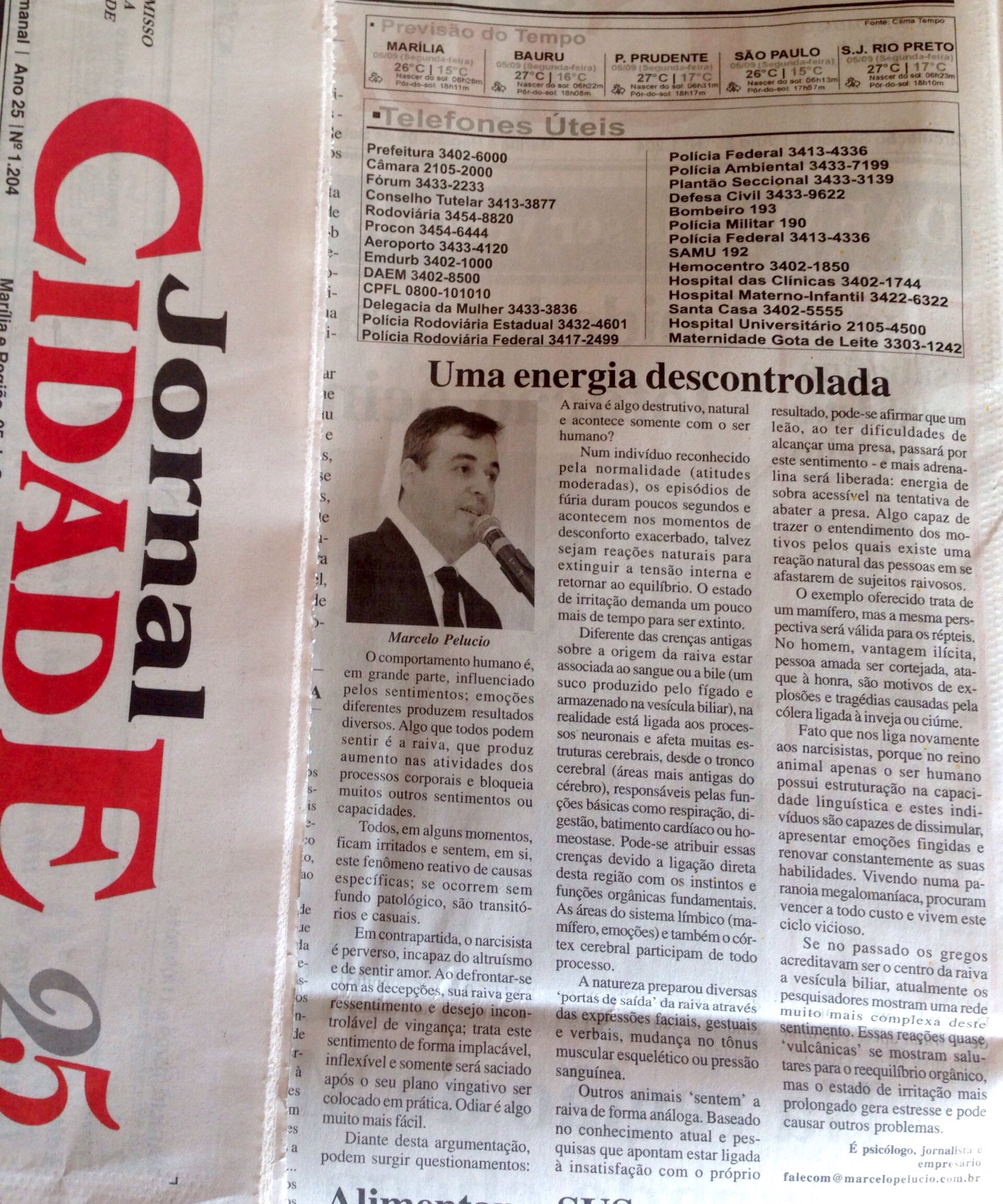O Jornal Cidade de Marília, publicação semanal há 25 anos, passa a disponibilizar artigos assinados por mim. Edição de 06/09/2016.