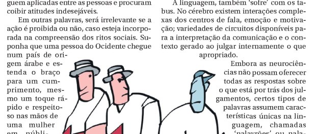 A linguagem, também ‘sofre’ com os tabus. No cérebro existem interações complexas dos centros de fala, emoção e motivação; variedades de circuitos disponíveis para a interpretação da comunicação e o contexto gerado ao julgar internamente o que apropriado.