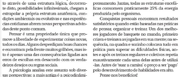 Conquistas pessoais encontram resultados satisfatórios quando estão baseadas nas práticas de pensar, organizar e treinar. Um dos melhores jogadores de basquete no mundo, primeiro criava e treinava as jogadas em sua mente; na sequência, na quadra e sozinho colocava tudo em prática para superar as dificuldades físicas, antes e após os treinos regulares e coletivos repetia exaustivamente cada uma delas antes de utilizá-las. Antes de ‘suar a camisa’ o preço ‘pago’ pelo desenvolvimento de habilidades era alto.